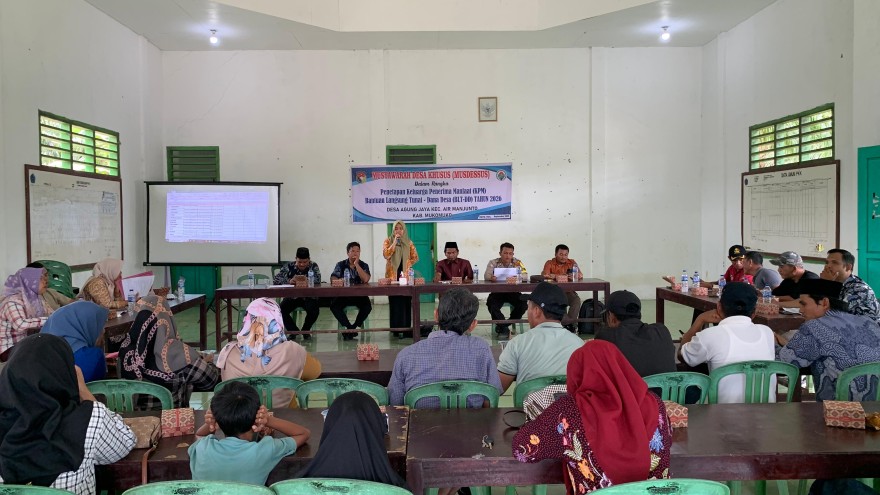 Pemerintah Desa Agung Jaya bersama Badan Permusyawaratan Desa (BPD) melaksanakan Musyawarah Desa Khusus (Musdesus) dalam rangka penetapan Keluarga Penerima Manfaat (KPM) Bantuan Langsung Tunai Dana Desa (BLT-DD) Tahun Anggaran 2026.